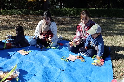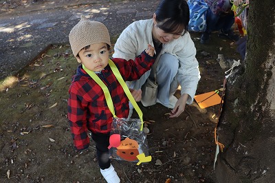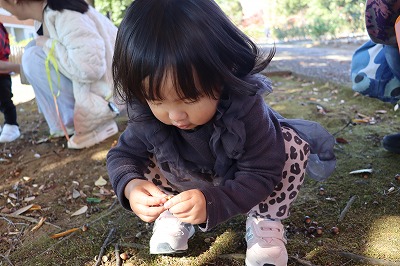いろいろな形のどんぐりや落ち葉、松ぼっくりを見つけました。